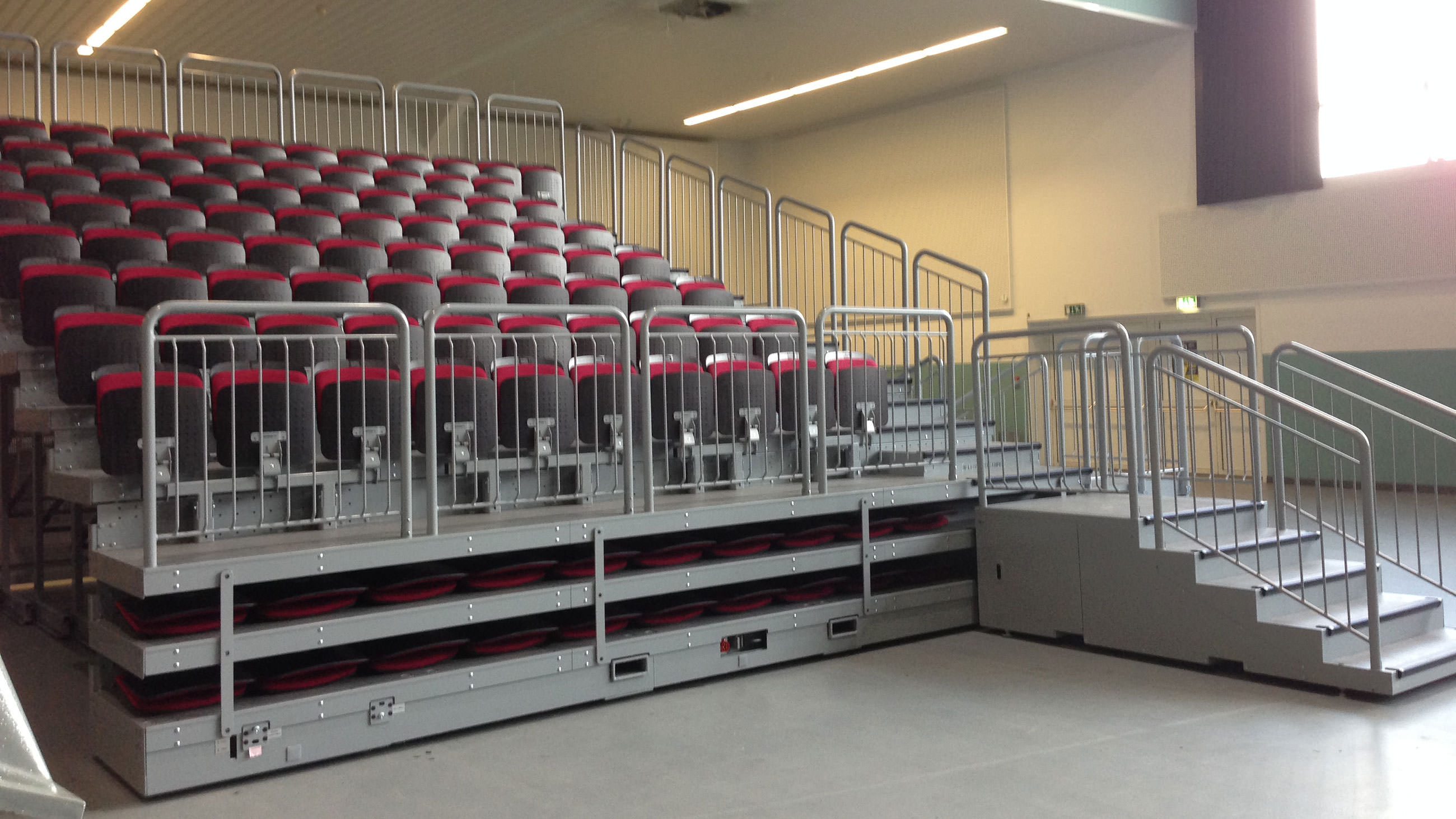 Schließung der ersten 2 Reihe, die Tribüne wird über eine Anstelltreppe erschlossen.