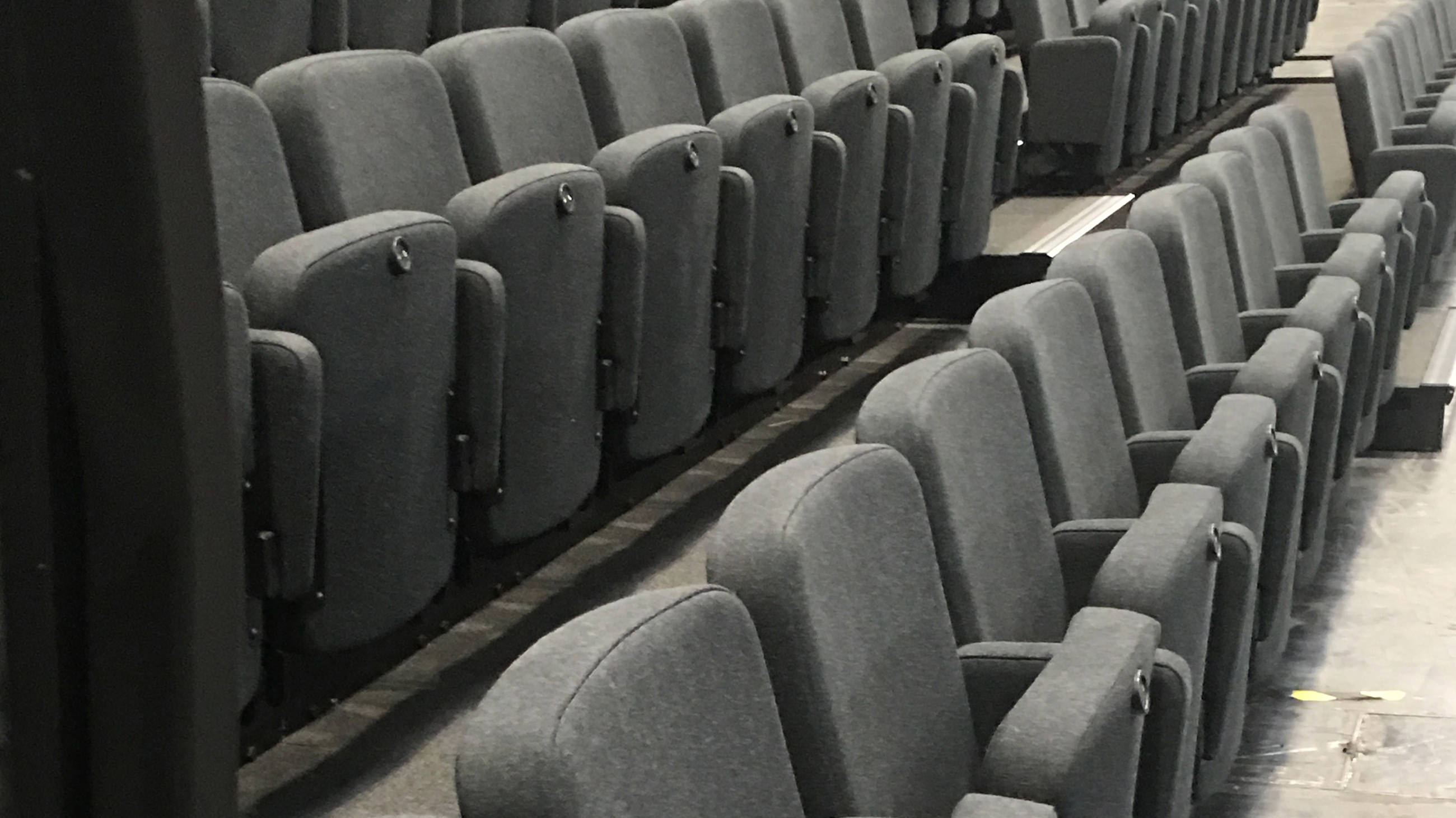 Durch das Nose-mounted Befestigungssystem, bei denen die Stühle im zusammengefahrenen Zustand aussen an der Tribüne zusammengefalten befestigt werden, ist es möglich, auch allseitig gepolsterte Stühle zu verwenden. Auch die Armlehnen sind gepolstert.