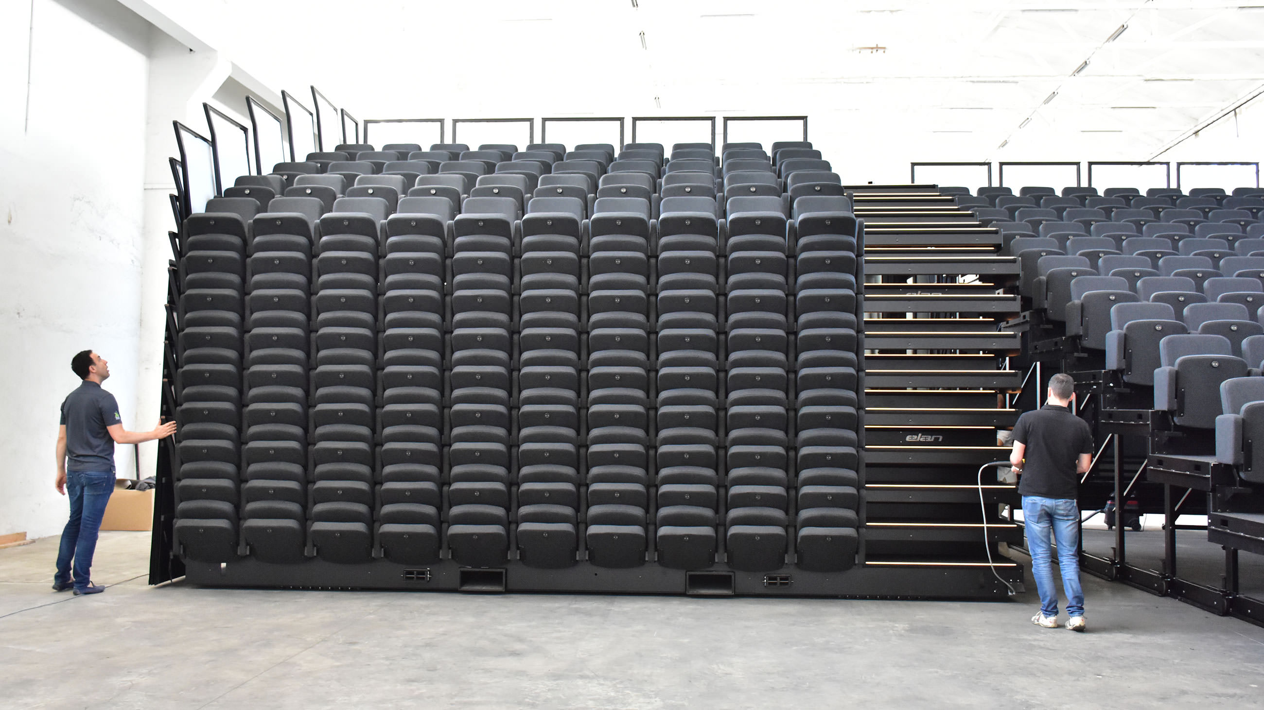 Durch unser spezielles „Nose-mounted“ Befestigungssystem an der Tribünenvorderseite ist auch ein manipuliert der Stühle nicht notwenig, beim Öffnern der Tribüne erfolgt auf das Öffnen der Stühle automatisch. (siehe Video).